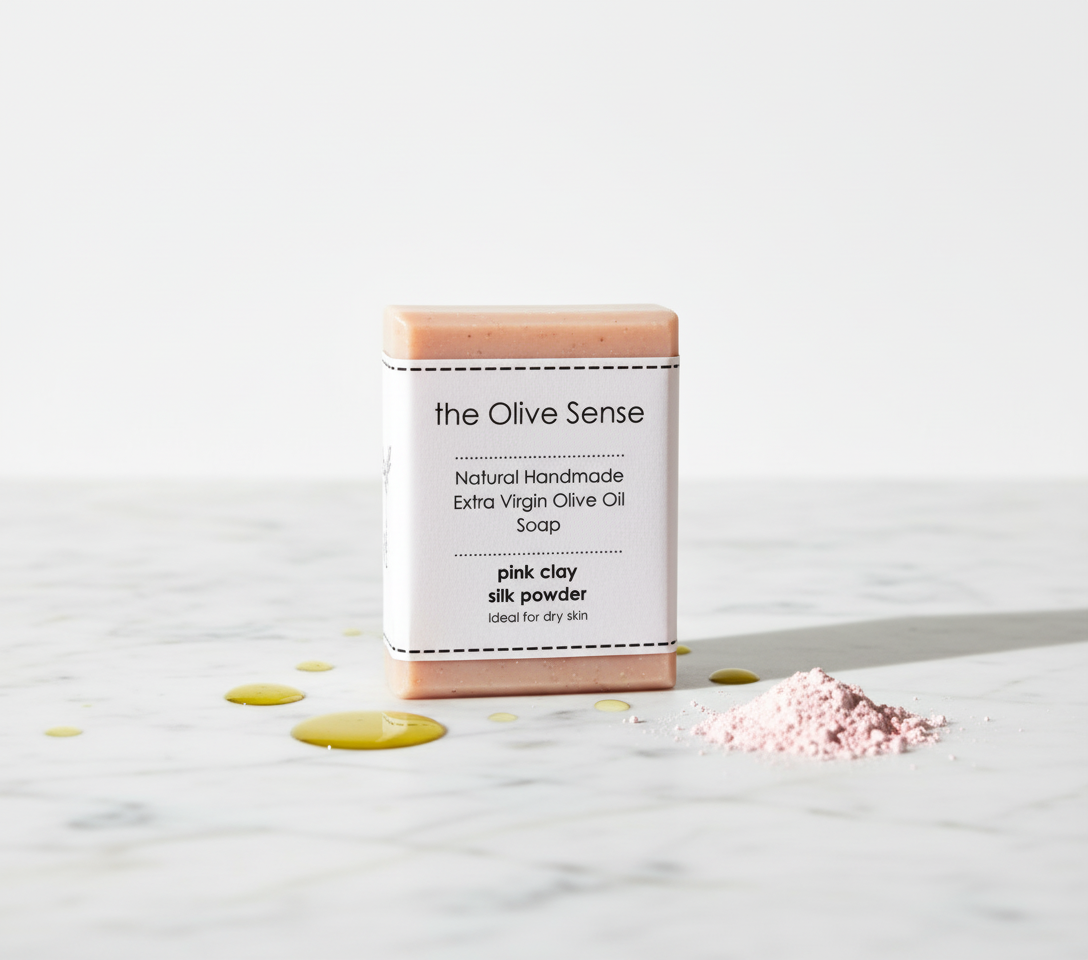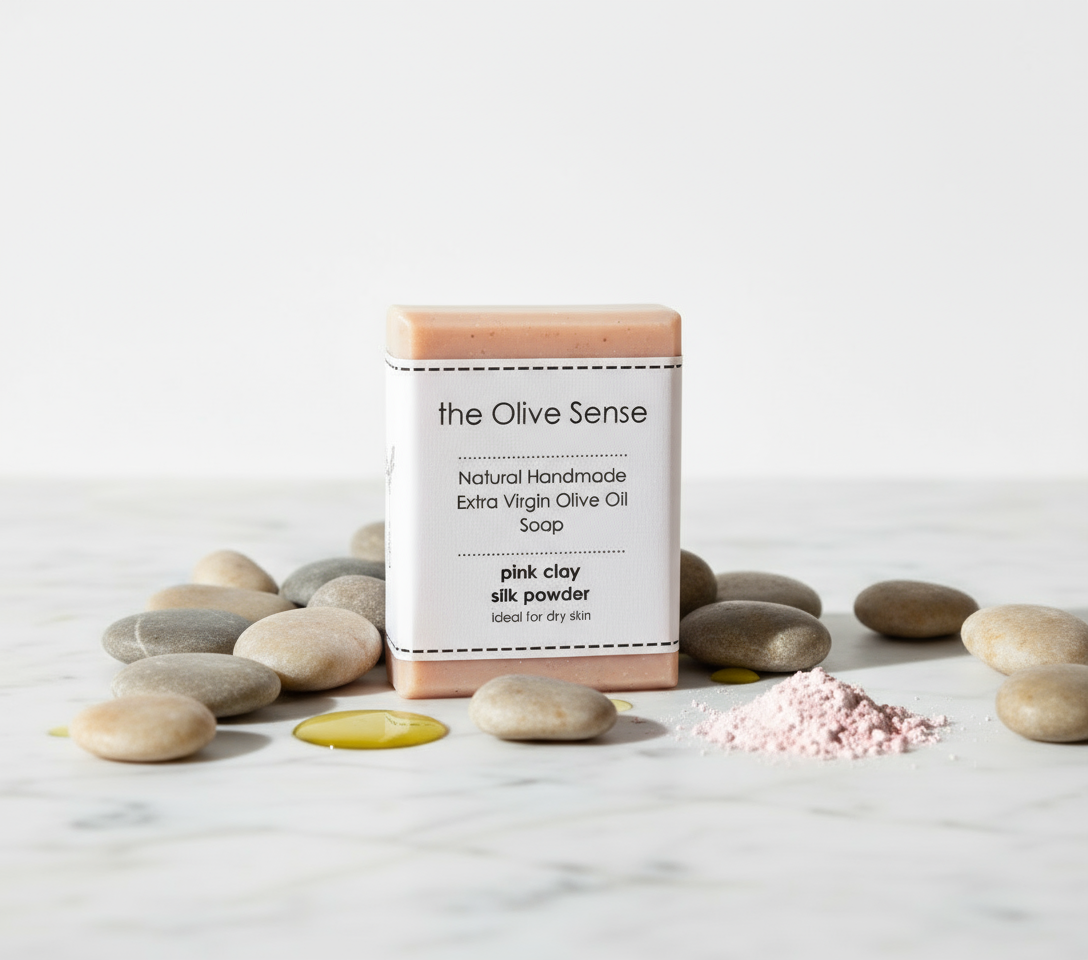 Σαπούνι με Ροζ άργιλο και μετάξι , που κάνει το αυτό σαπούνι ένα ισχυρό σύμμαχο για την ενυδάτωση της ξηρής επιδερμίδας