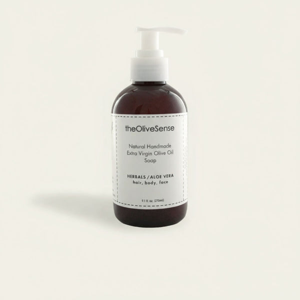 Herbs, Aloe Vera, Silk & Vitamin E – Hand Made Olive Oil Liquid Soap